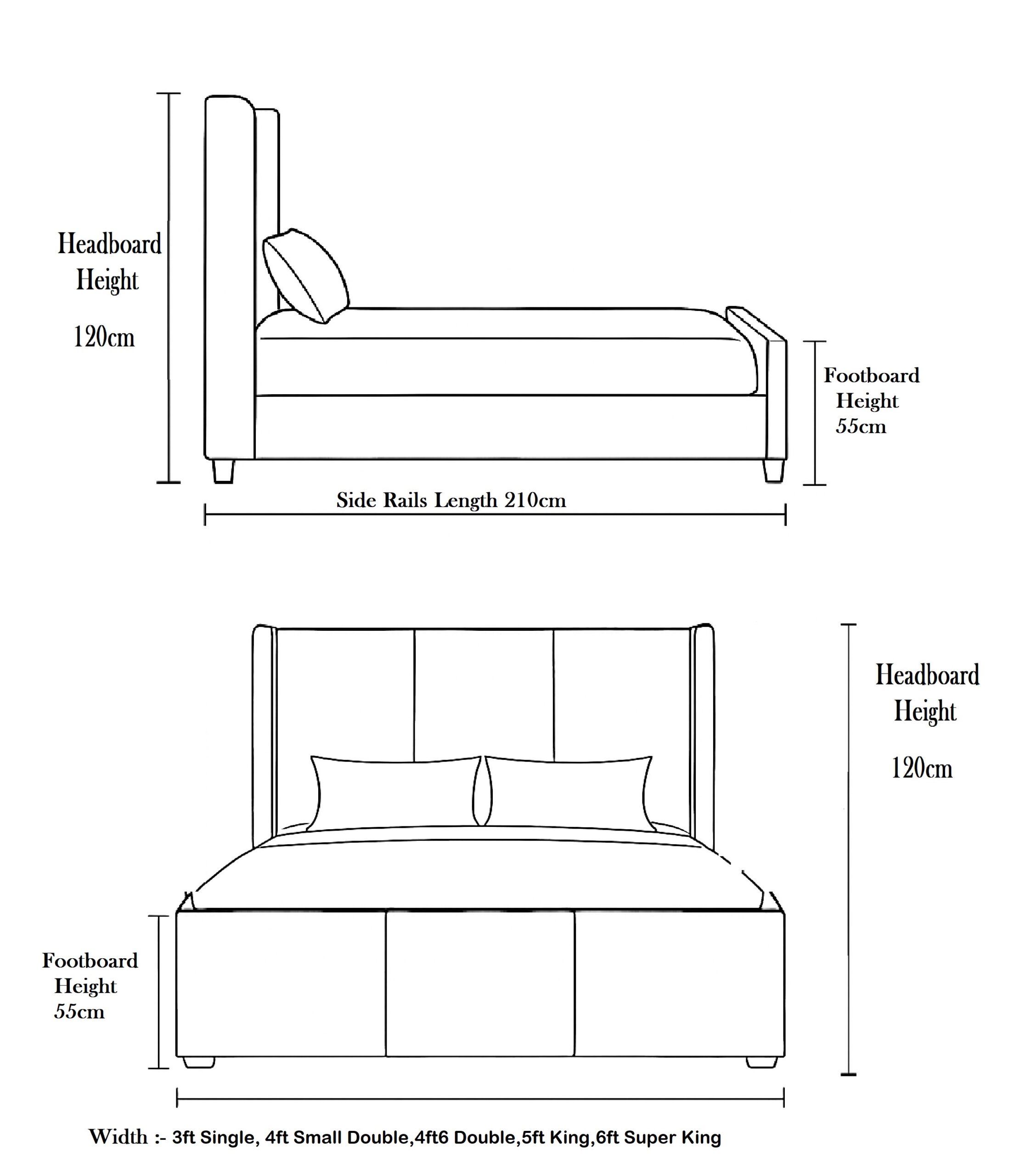 • Generous Dimensions – 120cm tall headboard, 55cm footboard height, and 210cm total length.
